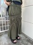【トップス】 今季のシーズンテーマ【WAVE】を施したコードデザインがポイントになったデザインノースリーブトップス。ハリのあるシャツ生地でシワになりにくいのが嬉しいポイント。 腰周りをカバーしてくれる丈感なので、女性らしいタイトなボトムとも相性〇。 【スカート】 今季のキーテーマである<WAVE>デザインを、ふんだんにスカートに取り入れたスカート。 コード調整で、ギャザーのボリューム感を、お好きな加減に変えることが出来るのが嬉しいポイント。 何より、軽量でギャザーとコードがとても伸びるので、足さばきも抜群です。 【シューズ】 スポーツサンダルを、UN3D.らしくモードに仕上げたシューズ。 ボリュームソールで、背も高見えしますし、なにより軽いので一日中履けます。 足の甲部分の、デザインは外側に足の形に合わせて開くので、様々な足の形に合わせて履けるところも嬉しいポイントです。