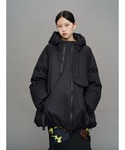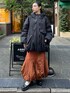 【ダウン】 NANGA×UN3D.のコラボダウン。 とにかく軽量で防寒に特化しており、男女共用でおつかいいただけます。 腰まですっぽり隠れる丈も、女性には嬉しいポイント。バックの方が長く作られていますので、横から見たシルエットもUN3D.らしくて◎。内側にもポケットが2箇所ついてますので、収納力もあり冬のアウトドアにも最適です。 【スカート】 裾の異素材ドッキングデザインと裾バルーンのシルエットが可愛いニットスカート。 ウエスト部分はハーフジップになっているので、薄手のインナーをINして着ることも可能です。 【シューズ】 見た目はスノーブーツのようなデザインが新しい、防寒に特化したブーツ。 内側にはリブ、その外には中綿入りの生地を使用しており、街でも履きやすいデザインに仕上げております。 見た目よりも軽く、フロントの境目がマジックテープになっており、脱ぎ履きも楽ちんです。