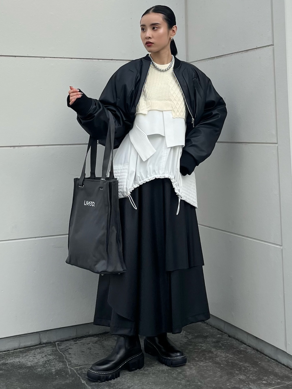 SAYURI(UN3D.)のブーツ「UN3D.SOLE SIDEGORE BOOTS / アンスリードソールサイドゴアブーツ」を使ったコーディネート