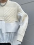 【アウター】 中綿がたっぷり入ったフェイクレザーのショートブルゾン。 下のたっぷりとしたギャザーや、バックデザインだけ長く作られているところなど、オーバーデザインでありながら華奢見え効果の高いブルゾンなので着太りの心配なしです◎。 【ニット】 立体的なモール糸を使用したケーブルニット。 下身頃には、硬めのハリのある全く違ったハイゲージのニットを編み込んでおり、遠くから見るとニットとシャツのドッキングトップスに見えるところがポイント。 全てニット生地なので、冬も暖かくお召いただけます。 【シャツ】 前シーズン大人気だった袖に中綿が入っていたシャツが今年バージョンに進化。 今回はシャツタイプとキャミソールタイプと2型お作りしています。 キャミソールシャツにも身頃全体に中綿を入れ、防寒度もしっかりあります。 裾のラウンドギャザーや、ボリュームのあるデザインはどんなボトムスと合わせても、バランスよくまとめてくれます。 【パンツ】 毎シーズン出る度に大人気なボトムスが、フェイクレザーのお素材で登場。一見、スカートに見えるオシャレデザイン!スカート苦手なんだよなぁ…という方でも、こちらなら履きやすいのでオススメですよ。カジュアルにもキレイめなアイテムとも、合わせて使いやすいボトムスです。 【ブーツ】 秋冬大活躍間違い無しのサイドゴアブーツ。 今季は36.37.38.39サイズと大きめサイズもお作りがございます。