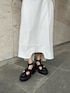 【ワンピース】 UN3D.のオリジナルプリントが可愛いタック入りワンピース。 体のラインを拾いにくい、ゆったりとしたサイズ感が幅広い女性におすすめ。 生地はもちっとしたシワになりにくい生地なので、旅行にも最適です。 【シューズ】 変形デザインが可愛いグルカサンダル。 定番のグルカサンダルが、UN3D.らしいウェーブがかったデザインで登場し、他とは差がつく足元に。 もちろん、とにかく軽くて履きやすさ重視のサンダルです。また、着脱もドットボタンで楽ちん。