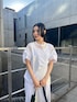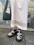 【ワンピース】 ハリのあるジャージー生地とシアー素材を組み合わせた異素材ドッキングワンピース。 タックが複雑に入っており、体のラインを拾わない計算されたデザインになっております。 また、合わせる小物によってキレイめにもカジュアルにも振れるので、組み合わせ次第で雰囲気を変えてコーディネートも可能です。 【シューズ】 変形デザインが可愛いグルカサンダル。 定番のグルカサンダルが、UN3D.らしいウェーブがかったデザインで登場し、他とは差がつく足元に。 もちろん、とにかく軽くて履きやすさ重視のサンダルです。また、着脱もドットボタンで楽ちん。