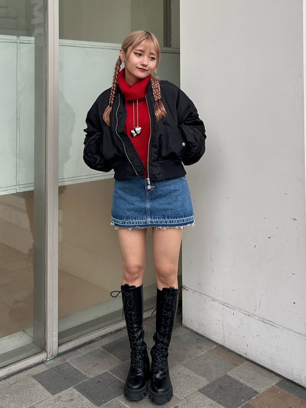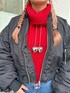 【アウター】袖のボリュームが可愛いショートMA-1❤️🔥丈感短めなので脚長効果抜群❕ 【トップス】ダメージ加工がめちゃ可愛いフロントのケーブルデザインがポイントのクロップドニット♥️秋冬差し色でお使いいただけます🍁 【スカパン】 デニム素材のスカパンはベーシックな形でどんなコーデでも合わせやすいです💖157センチでSサイズ着用しております❕