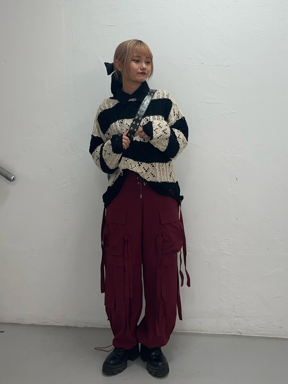 HONOKA(jouetie)のニット/セーター「ケーブルグランジニット【ダメージ/ボーダー】」を使ったコーディネート