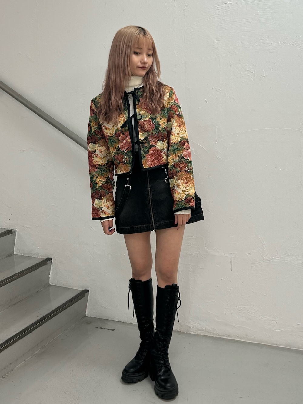 HONOKA(jouetie)のノーカラージャケット「フロントリボンゴブランジャケット」を使ったコーディネート