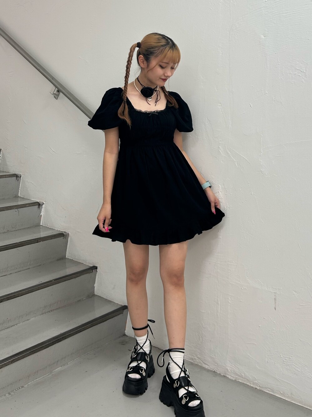 HONOKA(jouetie)のワンピース「ボリュームスリーブミニワンピース」を使ったコーディネート