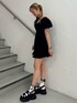 【ワンピース】フロント部分のリボンがポイントのミニワンピは顔周りが広めなので小顔効果抜群🎀パンツ合わせも可愛いです! 【サンダル】レースアップができるサンダル💖スニーカーソールなので長時間歩いてても疲れにくい❣️23cmでMサイズ着用です!