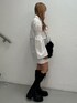 【シャツ】大きなリボンが可愛いビスチェ付きのシャツ♡⃛ビスチェは取り外し可能なのでビスチェとシャツ別々でも着ていただけます!157センチでお尻が隠れるくらいなのでロングブーツ合わせがオススメ✨ 【ブーツ】jouetie定番のレースアップブーツはストレッチが効いた素材なので歩きやすいです!足にフィットしてくれるアイテムなので足が細く見えます👀 【バッグ】ショルダーにもできるチェーンが付いたファーハンドバッグはコンパクトなサイズ感でどんなスタイリングにも合わせやすいです!