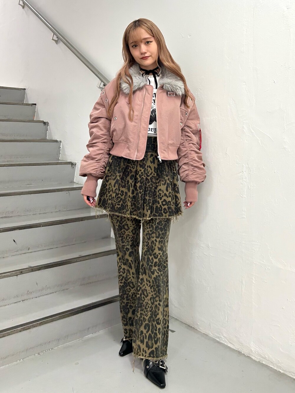 【アウター】袖と背中のギャザーがポイントのアウターはクロップド丈なので脚長効果抜群!袖は取り外し可能になっているのでベストとしても着用可能🙆♀️襟はベルトが付いており立ててあげるとマフラー代わりとしても使っていただけます💗 【パンツ】今季流行りのスカートレイヤードパンツ!スカート、パンツ単体ずつでもお使いいただける3WAYになっています!jouetieらしいレオパード柄がオススメ💗 【トップス】フロントのプリントが可愛いトップス!程よいぴったり感で1枚着でも、アウターのなかからプリントを見せてあげてもとっても可愛いです! 【シューズ】23センチでMサイズ着用しております!ベルトデザインがポイントのパンプス!コーデのアクセントになります🙆♀️