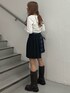 【トップス】夏人気だったリボンモチーフのトップスが長袖で登場しました✨リボンがレース素材なのがポイント🎀首周りが広いのでお顔がスッキリ見えます!丈感は短すぎず長すぎずなのでどんなボトムスとも相性抜群♡ 【スカート】アシメのプリーツスカートは左右で柄が違うのがポイント❕中にパンツを履いてレイヤードするのもオススメです! 【ブーツ】今季流行りのエンジニアブーツ❕履き口は広いので着脱しやすいです💗取り入れるだけでトレンドスタイルが出来ちゃいます✨ 23センチでMサイズ着用しております!