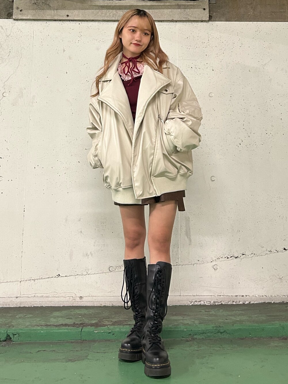 HONOKA(jouetie)のブルゾン「フェイクレザーライダースMA-1ジャケットブルゾン」を使ったコーディネート