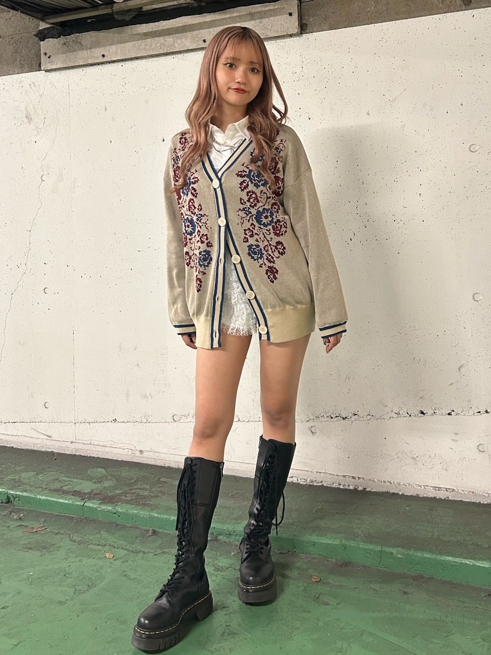 【カーディガン】フロントのお花のデザインが可愛いカーディガン🌼157センチでおしりが隠れる長さでミニのスタイリングやロングスカートと合わせて大人っぽく着ても可愛いです💖 【シャツ】フロントと袖のギャザーを自分で調節出来るので好きなシルエットで着ていただけます❕1枚でもシンプルになりすぎないのがポイント💖 【パンツ】今季流行りのレースパンツ💖大きめのニットやパーカーと合わせてレースをチラ見せしても可愛い❕
