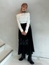【トップス】オフショルのデザインが可愛いトップスは程よい肌見せが出来ちゃう❕春には1枚あると便利アイテム🩷大人っぽくロングスカート合わせやカジュアルにデニムで合わせてあげるのもオススメ❕ 【スカート】前回大人気だったラインスカートがアップデートして登場❕大きめのティアードが存在感抜群❕どんなコーデにも合わせやすいカラーから春夏らしい水色までの4色展開です👌 【ブーツ】今季流行りのウエスタンディテール スタッズとスクエアの形がコーデのポイントになります🩷22.5cmでMサイズ着用してます!