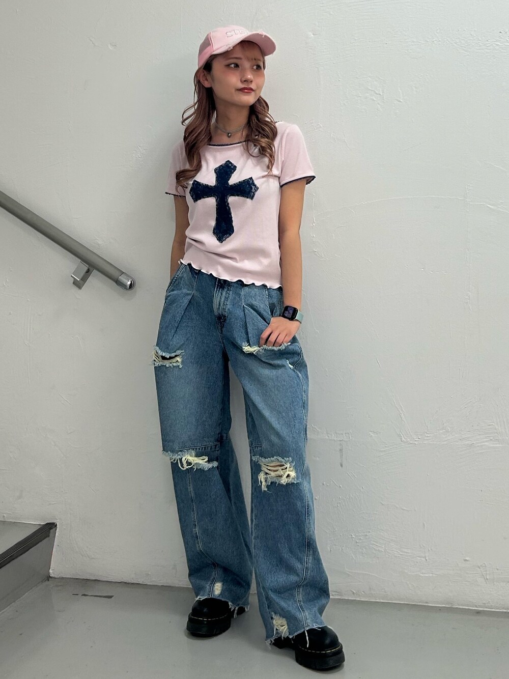 HONOKA(jouetie)のキャップ「ヴィンテージライクロゴメッシュキャップ」を使ったコーディネート