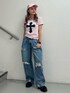 【トップス】レースとの配色がとっても可愛いトップス💖程よいフィット感で体のラインを拾いすぎないのがとっても嬉しい✨ハイウエストのボトムスと合わせてあえてインせず緩めに着るのがおすすめ💖 【ボトムス】somethingコラボのデニムは軽くて生地も柔らかく歩きやすい✨157センチでsサイズ着用しています! 【キャップ】今季流行りのメッシュキャップはjouetieらしい配色で登場❕コーデのポイントとしてひとつ持っておくと便利アイテムです💖