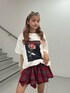 【トップス】jouetieらしいバラ柄と配色がとっても可愛いトップス🌹157センチでおしりが隠れるくらいの長さ❕フロントとバックの文字がラメになってるのもポイント🙆♀️ 【スカート】中がパンツになってるので1枚で安心して履いていただけるアイテム❕ベルトのデザインがポイントで大きめのトップスとの相性抜群❕