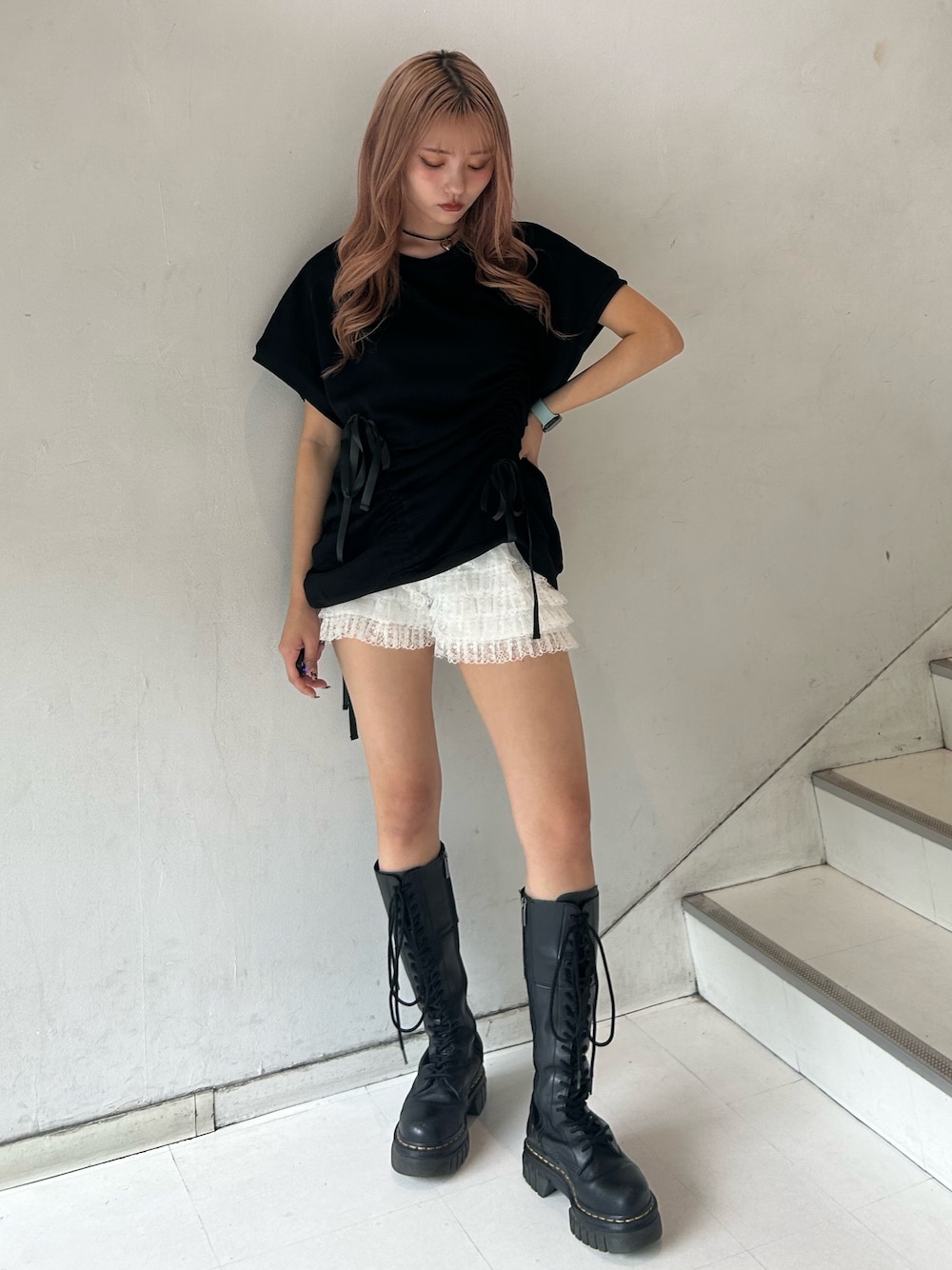 HONOKA(jouetie)のTシャツ/カットソー「シャーリングリボンルーズプルオーバー」を使ったコーディネート