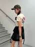 【トップス】Lilo&StitchコラボのTシャツはフロントとバックのロゴがとっても可愛いアイテム❕jouetieらしい配色でコーデのポイントになります🙆♀️程よいフィット感で締め付け感0です🩷 【スカート】157cmでSサイズ着用して太もも半分位の丈感です❕ウエスタンベルトがコーデのポイントになります🙆♀️ハイウエストなので脚長効果💖 【ブーツ】jouetie定番のレースアップロングブーツが今季も登場❕22.5cmでMサイズ着用してます🩷