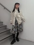 【ジャケット】フロントのフリルとオーバーサイズのシルエットが可愛いトラックジャケット💖157cmでおしりが隠れるくらいの長さ❕上下ZIPなので色んなパンツに合わせやすいのもポイント⭐️ 【ボトムス】セットアップでの着用可能のスカート❕裾のレースがとっても可愛い💖長すぎない丈感なのでブーツ合わせがおすすめ✨