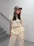 【トップス】セットアップでの着用可能🙆♀️コンパクトなサイズ感のZIPフーディは羽織で着るのもオススメ🩷 【ボトムス】セットアップでの着用可能🙆♀️サイドのリボンがポイントで裾は絞れるのでショートブーツに被せて履いていただくのがオススメ✨