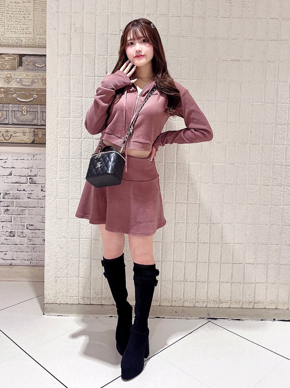 【パーカー】 肌触りの良いリブ素材パーカー🤍袖はトレンド感のあるサムホール仕様です🫶🏻合わせるアイテムで雰囲気が変わり着回し力も抜群です✨ 【スカート】 程よいフレアシルエットが可愛いリブスカート💞インナーパンツ付きなのでミニ丈でも安心✨ロゴのワンポイントデザインなので着回し力も抜群です☺️ 【シューズ】 美脚盛れ間違い無しのロングブーツ🤍傾斜が少ないので一日歩いていても疲れにくいです🫶🏻足のサイズ23.5cmの私はLサイズを着用しております✨ 【バッグ】 サイズ感とロゴデザインが可愛すぎるバニティバッグ💕どれも大人ガーリー感溢れるカラーで四色展開です🥰 【アクセサリー】 バレエコア感のあるリボンヘアクリップ🎀髪をねじって付けるだけで簡単にガーリーヘアが完成します🫶🏻