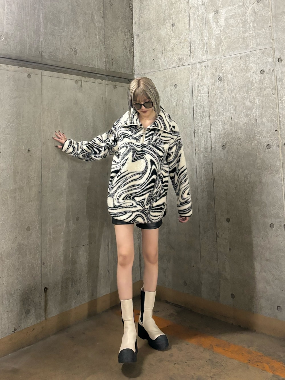 佐藤百華(EMODA)のTシャツ/カットソー「ハーフジップボアプルオーバー」を使ったコーディネート