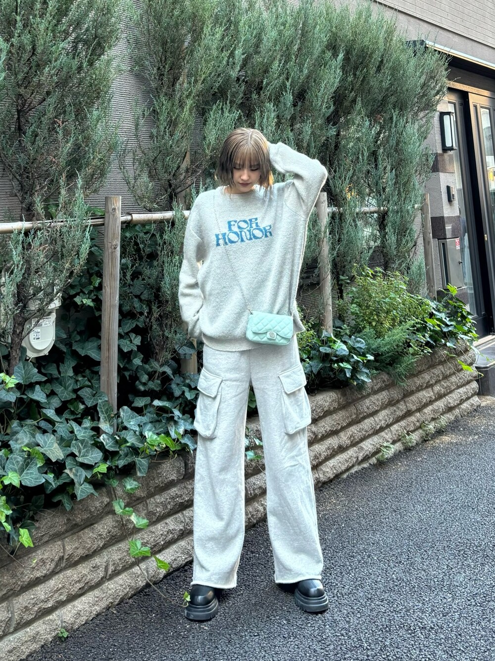 佐藤百華(EMODA)のニット/セーター「【WEB限定】ジャガードルーズオーバーニット」を使ったコーディネート