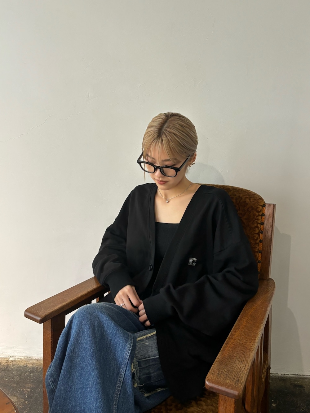 佐藤百華(EMODA)のカーディガン/ボレロ「ストーンロゴルーズカーディガン」を使ったコーディネート