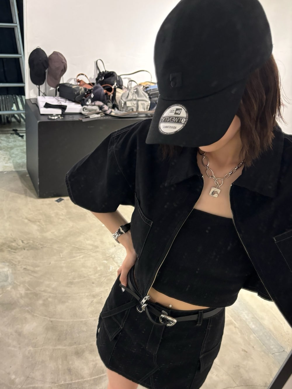 佐藤百華(EMODA)のキャップ「【ニューエラコラボ】ボックス E マークキャップ」を使ったコーディネート