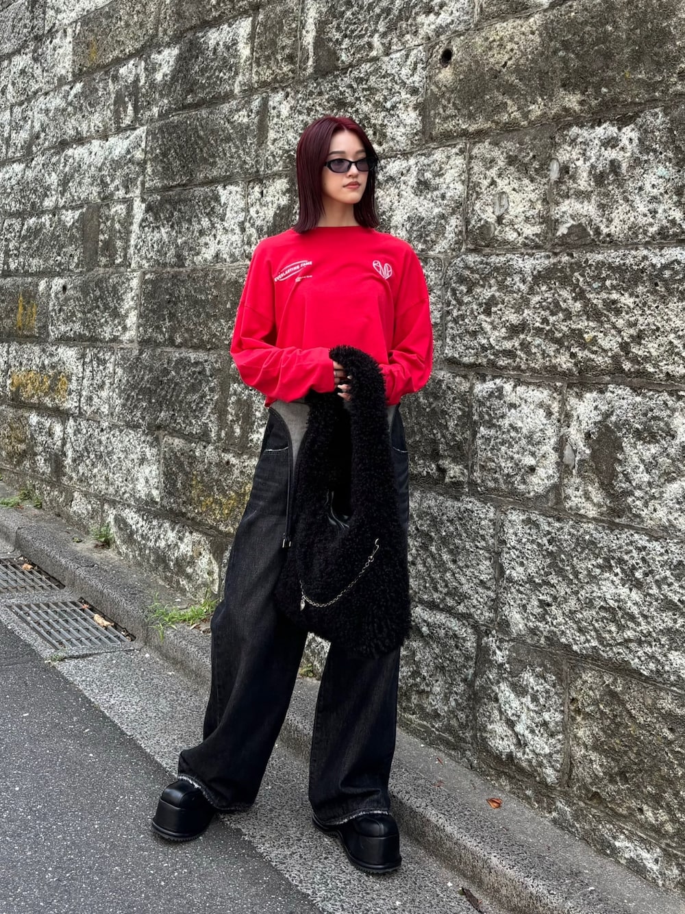 佐藤百華(EMODA)のデニムパンツ「サスペンダーワイドジーンズ」を使ったコーディネート