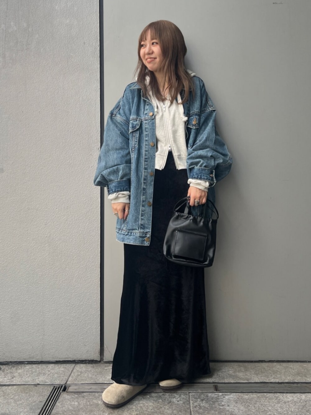 【トップス】 ショート丈のダブルジップパーカー💟 おへそに少しかかるくらいの短丈で、ハイウエストのボトムとのバランス感がすごく可愛いです✨ ジップの開け方で雰囲気変えて着ていただけます😌 【デニムジャケット】 大人気のデニムジャケット🩵 オーバーサイズのシルエットで、中にも着込みやすく冬にも大活躍です! 【スカート】 履くだけでスタイルアップして見えるベロアスカート🖤ウエストは程よくフィットし、ラインを拾わないシルエットでスッキリ履いていただけます🙂↕️後ろにスリットも入っており、伸縮性もあるので動きやすいです🫶🏻