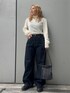 【トップス】 ベロアトップスのサイドがチュールになっており、程よく透け感のあるアイテム✨ピタッとしすぎず、着痩せして見えます🫣 トップスとしてもインナーとしてもお使いいただけるので春まで長く着られます! 【デニム】 155cmで24インチ着用。ウエストはフィットし、緩めのカーブシルエットでだぼっとしすぎず、裾に溜まるシルエットが可愛いです👖 ワンウォッシュの生地ですが柔らかく履きやすいです💙