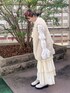 ″秋を感じるベージュワントーンコーデ″ 【アウター】ファーベストはmerryらしいサテンのリボンが特徴です🎀 春秋は一枚で、寒くなったらアウターの上に重ねていただいてもお持ちのアウターがワンポイントアップします! 【ブラウス】お袖が特徴のブラウスです! 一つ一つがキュッとしっかり締め付けてくれているので二の腕もカバーしつつ、可愛くしてくれます! 【スカート】定番のティアードスカートですが、布地が柔らかく温かみがあるので秋冬もってこい、そしてレースなので年中お使い頂けるアイテムです❁ 154cmですが、ウエストゴムがしっかりあるので丈感気にせず着用して頂けます! 【ブーツ】ショート丈のブーツは上半分がメッシュになっているデザインで、他と被らないアイテムです! ミニ丈のものと合わせて、ブーツ全体を見せるも良し。ロング丈と合わせてパンプス風に見せてもよし。 2通りの楽しみ方が出来るアイテムです。 私は普段靴は23.5cmでMサイズを履いていますが、冬は分厚めのタイツを着用するのでLサイズで履いております。