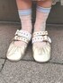 ❁ワンピース お花柄のスモッグ型ワンピース。 首元キュッとしたギャザーとウエスト切り返しもあるのでフワッとしたシルエットに。 お袖丈もひじ隠れるくらいなので1枚でなら今の時期から秋や春の季節に。 付属のペチコートをリブニットなどに変更頂くと冬も着用頂けます! 私は154cmフラットシューズ着用で足首隠れる位の丈感です。 ❁シューズ ベルトがポイントの足先ラウンド型のフラットシューズです。 カラー展開によって色味が変わるチェックのベルトがとっても可愛い♡ サイズ感はベルトで調整可能となっています! 私は23.5cm幅狭めでMサイズを着用しており、ベルトで調整するとサイズ感ピッタリでした!