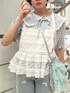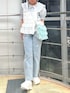 ❁トップス 夏らしい軽い素材感のギンガムブラウス🌷 セットアップ対応のスカートと合わせるだけでなく、お持ちのスカートやパンツと合わせるのも◎ お袖がパフになってるのもポイントです! ❁ビスチェ エプロンモチーフのビスチェは色んな柄のレースであしらわれておりとってもガーリーに。 脇部分ゆったり大きめなのでインナーはスウェットなど厚めなものを重ねても◎ ❁バッグ キラキラなスパンコールのポシェット✨ 今年はお花の刺繍が付いてより春らしくなりました!ショルダー部分は長さ調整可能で、ポシェットながら500mlのペットボトルが入るサイズ感です! ❁デニム 小さなリボンが沢山のデニムパンツ🎀 お膝あたりまでたくさんなので、長めの丈のトップスやチュニックと合わせても可愛く見せられます! 私は154cmで足首ピッタリくらいの丈感です! ❁帽子 フリルにリボンと可愛さたっぷりなアイテム! これからの季節プラスワンするだけでお顔周り華やかに🌸 ❁シューズ チュールたっぷりの厚底スニーカー。 シューレースが2種類付いているので、お好みのスタイリングで変えていただけます♡ 私は154cm甲低めでMサイズをゆったり着用しております!