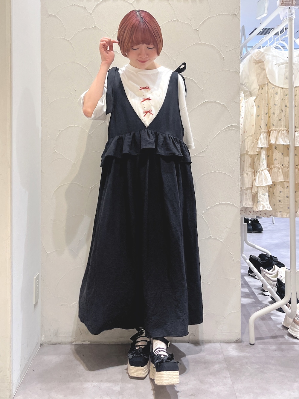 manami(merry jenny)のワンピース「サテンリボンジャンパーワンピース」を使ったコーディネート