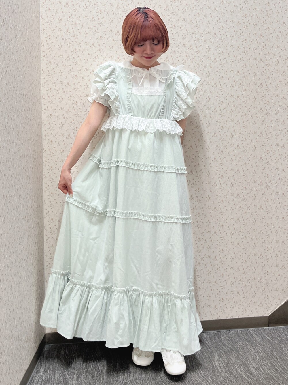 ❁トップス お袖のパフスリーブやチュールがガーリーなブラウス。1枚でもインナー使いでもご着用いただけます。 ❁ワンピース トレンドのストライプ柄のワンピース。 フリルがあしらわれていたり、ふんわりしたシルエットがmerry jennyらしいアイテムです! ブラウスと合わせてガーリーに、キャミソールと合わせて大人っぽく着用いただけます。 私は154cmでフラットシューズで足首隠れる丈感です! ❁シューズ トレンド感あるフラットなスニーカーもmerry jennyではレースとリボンでガーリーに🎀 足先のリボンは取り外し可能で雰囲気を変えて着用頂けます! 私は23.4cmでMサイズを着用しております!