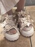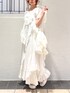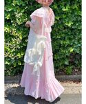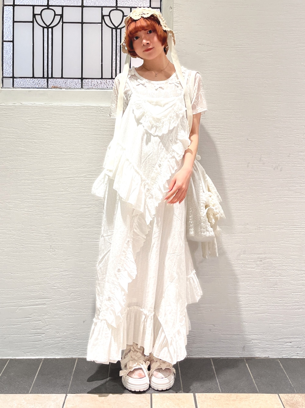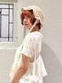 ❁トップス シアー素材の軽やかなTシャツはリボンがたっぷり🎀 ジャストなサイズ感で1枚でももちろん、インナーとしても使いやすいアイテムです! ❁ワンピース merry jennyらしいレースやフリルに加えて、リメイク感あるデザインのキャミワンピース。 ストンと落ち感あるシルエットで可愛さの中に大人っぽさも◎。 私は154cmで足首ちらっと見える丈感で、肩紐で調整可能です! ❁帽子 透かし編みになった夏らしいお帽子。 リボンがついてるのでガーリーなお洋服にも⑅⃛ つばに落ち感があるがより可愛らしさがアップしますよ♡ ❁バッグ リボン×レースの巾着型トートバッグ🎀 絞りを緩めるとA4サイズも入るトート型に、絞って頂くとコンパクトに。 場面によって変えて頂く事ができます! ❁シューズ リボンたっぷりのサンダル🎀 ソールがスポーティなので甘すぎず履いて頂けます!私は23.5cmの甲低めでMサイズを着用しております!