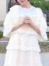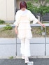 ❁Tシャツ ″ぬいぐるみが2匹お布団で夢見ている″とってもかわいいプリントがされたTシャツ。 ビッグシルエットな上に生地も柔らかく着心地抜群です!154cmの私でおしり隠れる丈感です! ❁ボレロ 昨年大人気だったレースボレロが今年は半袖verで登場しました! レース生地がmerry jennyらしい上にお袖部分がパフスリーブになり、さらにガーリーに♡ ショート丈でスタイルアップ効果も抜群です! ❁チュニック チューリップ柄×フリルが可愛らしいベビードール。 軽やかな生地感で今の暑い時期から着用いただけます!アジャスターで丈感調整可能です🌷 ❁ボトムス merry jennyの定番のレースフレアパンツにりぼんが付いてさらに可愛くなりました♥154cmの私で引きずらない丈感です! ウエスト折って着用も頂けるので安心だと思います! ❁シューズ リボンがふんだんにあしらわれたサンダルです!やわらかな生地感で女性らしさも◎ 私は23.5cmサイズを着用しております! 足首調整可能で1番きつくして着用してます。