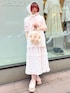 ❁Tシャツ マロンクリームコラボのかわいすぎるビックTシャツ。お袖のリボンに裾のフリルがとてもときめく可愛さです! 私は154cmでおしり隠れる丈感です! ❁インナー 昨年も大人気だったフードトップスが生地も変わって再登場です! 今年の生地は昨年同様ストレッチが効いている上に透け感があるのがポイントです! 1枚でももちろん、半袖アイテムやキャミワンピースとのレイヤードもおすすめです! ❁スカート 生クリームのようなふわふわ感のミディ丈ワンピース。おそろい生地のビスチェと合わせるのももちろん、どんなトップスと合わせても華やかにしてくれます! 私は154cmで足首見える丈感です! 総ゴムなので着心地も抜群ですよ! ❁バッグ マロンクリームコラボのバッグ。 大きすぎないサイズ感で、少し近くのお出かけにももちろんサブバッグなどにもお使いいただけます!持ち手のリボンに、たくさんのマロンクリームちゃんがポイントです! ❁スカーフ ジャガード素材のスカーフはレースなどがあしらわれているのがポイント! トレンド感あるアイテムで取り入れるだけで今っぽい仕上がりに! ❁シューズ スエード素材が秋先取りな厚底シューズ。 しっかり厚底で身長盛ってくれるので、ミニ丈とも相性ばつぐんです! 私は23.5cmでMサイズがジャストサイズでした!