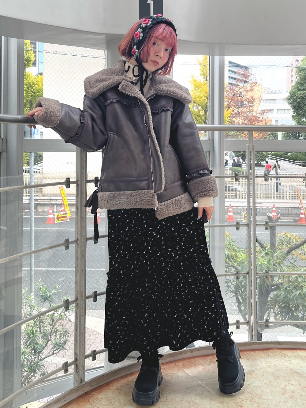 manami(merry jenny)のムートンコート「クリームボアムートンブルゾン」を使ったコーディネート