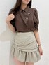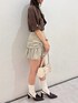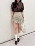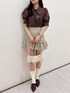 ブラウンとベージュの2色で色味を統一することでまとまりのあるコーデにしました!! トップスはNEWカラーで大人っぽさのあるブラウンとホワイトのストライプ柄となっています🤎🤍パンツでもスカートでも相性◎ スカートはリボンデザインになっており裾はバルーンでトレンド感のあるミニスカートです👍🏻🌟インパン付きなので安心して履いていただけます.ᐟ.ᐟ