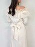 オフショルでも着れる2WAYの大人ワンピース🤍胸元のフリルや後ろの大きなリボンで可愛らしさをプラスしてくれます🎀💕伸縮性のある生地感でさらっと着れつつ、シルエットもキレイなのでスタイルも盛れます🥺🫶🏻 シューズはスエード素材なのでより大人なパンプスです👠 バッグはスカーフ取り外し可能でシンプルなデザインなのでキレイめコーデからカジュアルコーデなんでも合わせられます◎