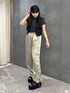 『カラー×レイヤードコーデ』 カラーを取り入れるコーデに挑戦したい方にしていただきたいコーデです💚 【pants】 サテン生地の素材で、少しだけシワ加工もしているのでオシャレ見えします♪ ゆるっとしたシルエットなので、夏に足を出したくない人にも涼しく履いていただけます☺︎ 【tops】 ショートTシャツ×ベストの組み合わせが、いつものコーデにひと手間加えたコーデになるのでおすすめです♡
