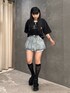 misakiのデニムスカート「プリーツデニムスカート」を使ったコーディネート
