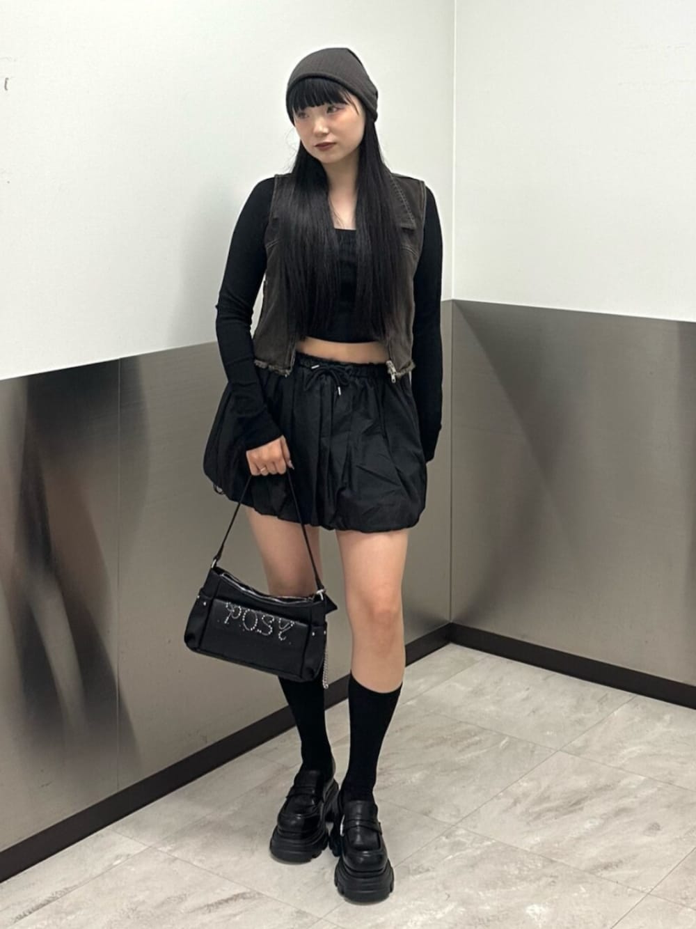 【vest】 ヴィンテージカラーのデニムベスト🖤 今期人気なバルーンスカートと合わせて、トレンドコーデにしました♡ インナーは何を着ても可愛くなるので、コーデに迷ったらこのvestに決まりです✨ 肩幅も華奢見えするので、スタイルも盛れます☺︎ 【tops】 この春大活躍すること間違いなしのトップス🖤 胸元がスクエア型に空いてるのでデコルテも綺麗に見えて細見えします☺︎ 【skirt】 今期流行りのバルーンスカート🖤 着膨れしないボリューム感で脚も細く見えるのでスタイルも盛れます♡ 160cmで丈感も丁度良いです! 【shoes】 EMODAで大人気のブーツのソールはそのままなので、軽くて歩きやすく身長も盛れます♡ 24.5〜25.0cm Lサイズで丁度良いです!! 【bag】 持ってるだけで可愛いが叶います🖤 底にはマチがついてるので型崩れしない+大容量で使いやすいです☺︎ 【beanie】 頭の後ろにたぽっとたまるデザインが可愛いです🤎 生地感も薄めなので、夏でもコーデのワンポイントとして着用できます☺︎