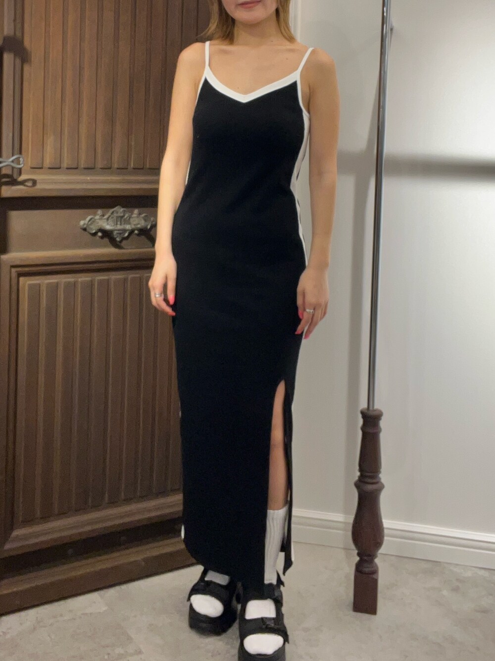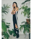 齊藤愛奈(EVRIS)のワンピース「【みちょぱコラボ】バイカラーリブロングワンピース」を使ったコーディネート