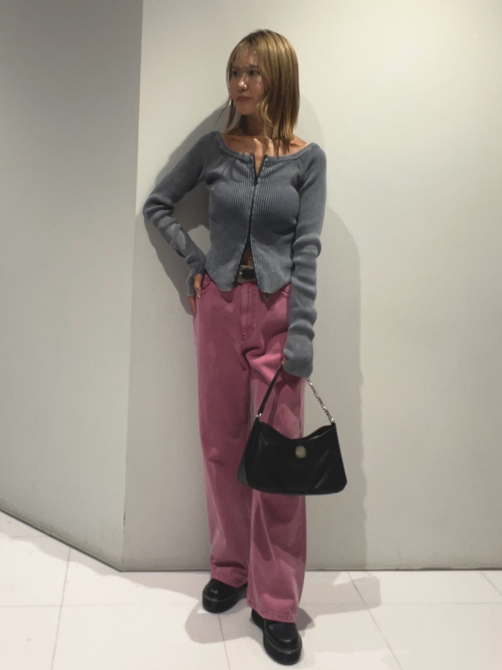 齊藤愛奈(EVRIS)のニット/セーター「ピグメントジップオフショルニットトップス」を使ったコーディネート