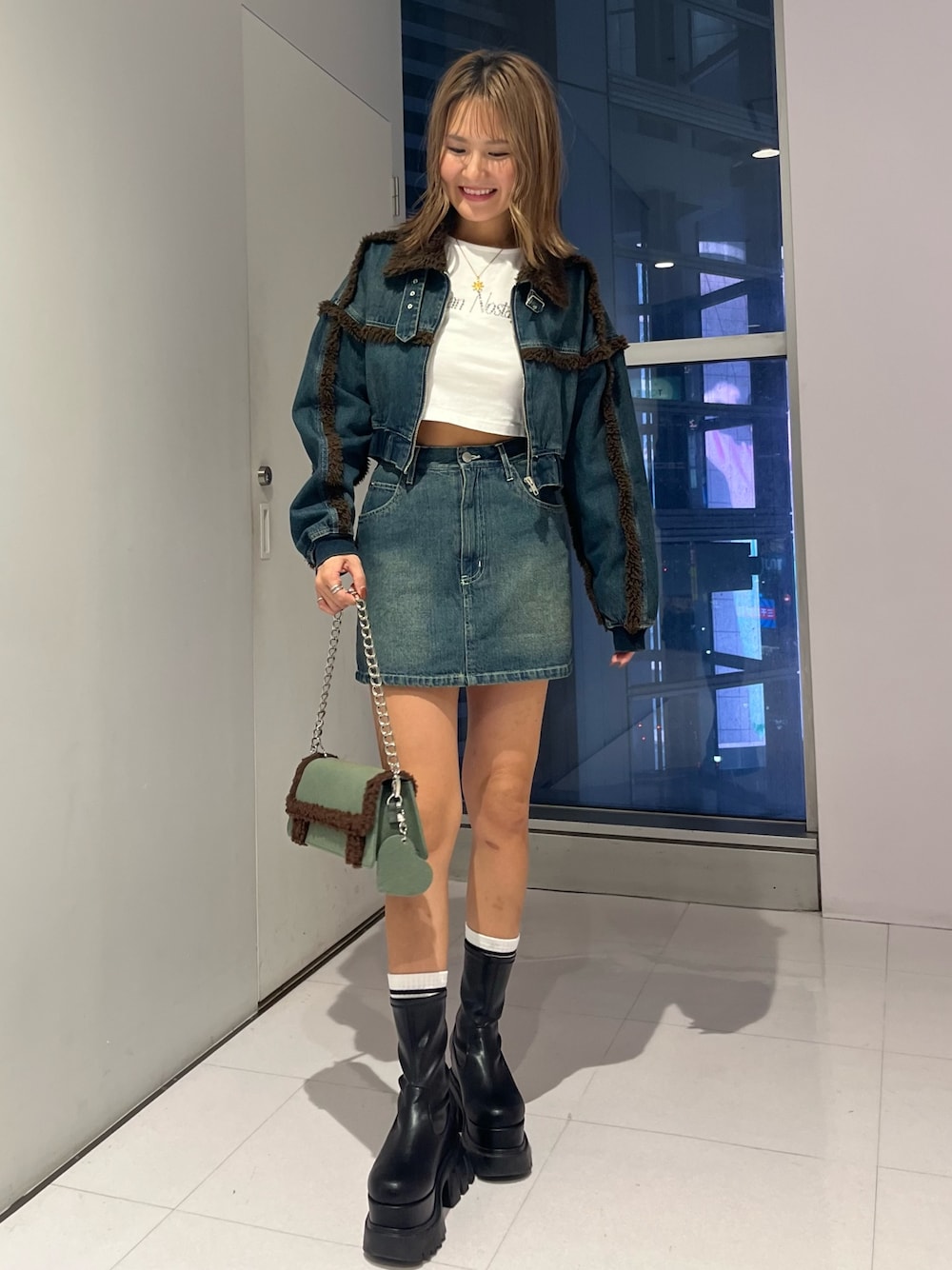 齊藤愛奈(EVRIS)のブルゾン「デニムボアブルゾン【セットアップ着用可能】」を使ったコーディネート
