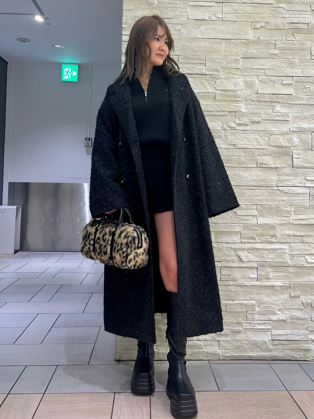 齊藤愛奈(EVRIS)のチェスターコート「ラメオーバーサイズロングコート」を使ったコーディネート